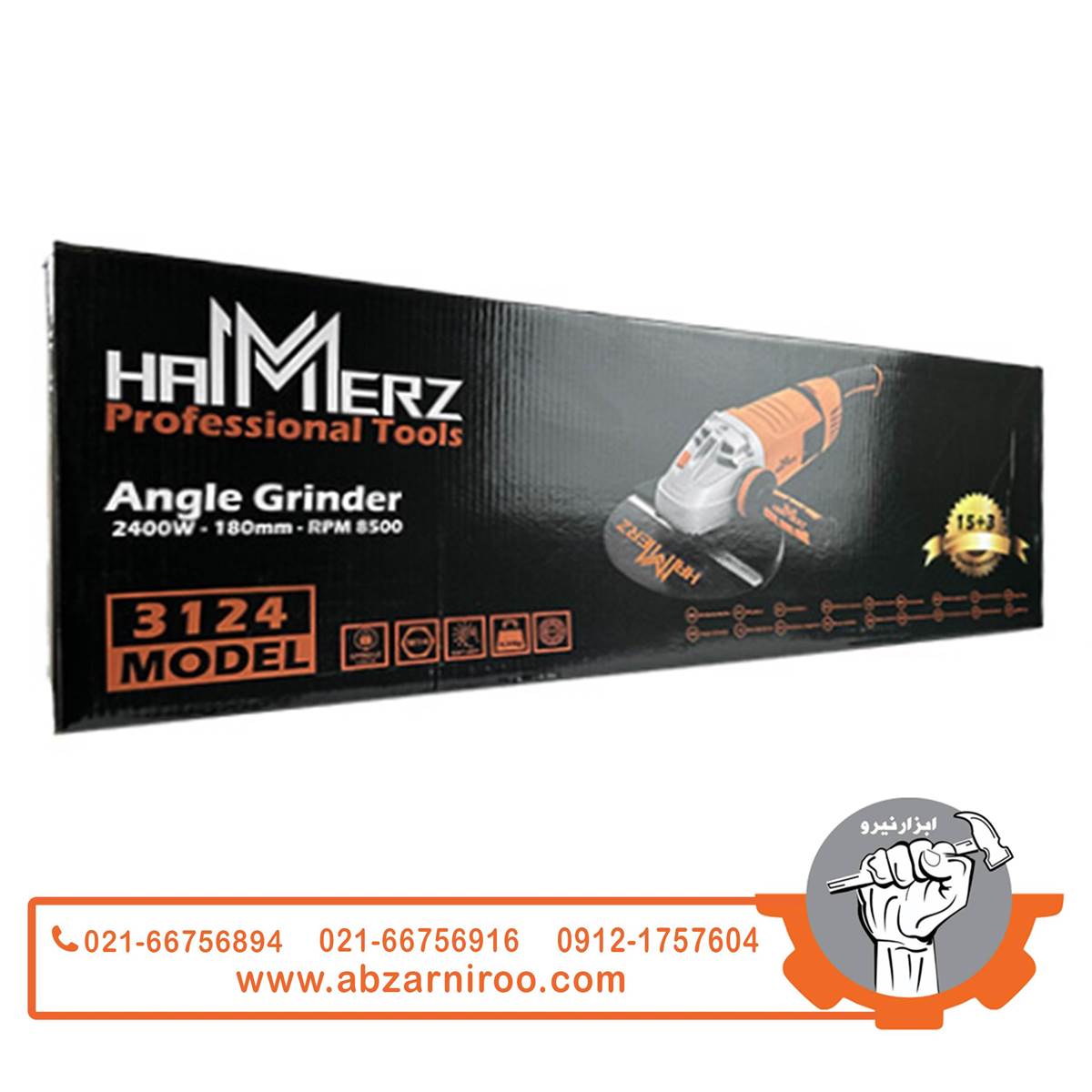 همراه با: دستگیره کمکی آنتی شوک - محافظ صفحه 180 میلیمتری - آچار صفحه فرز - آچار محافظ صفحه فرز - یک جفت ذغال