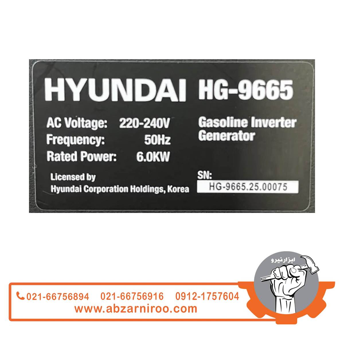 موتور برق اینورتری بنزینی 6.5 کیلو وات هیوندای مدل HG-9665 (ریموتدار)